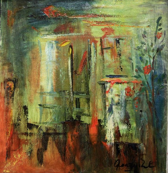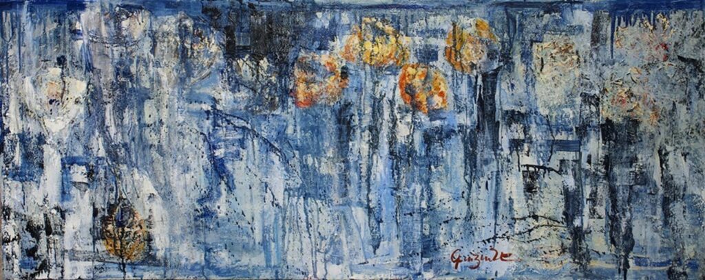 where the artist almost eliminates figurativeness and completely addresses the dimension of abstract expressionism. Here she is as free as possible and seems to visualize her unconscious with open, rough aggression. It is a kind of abstract landscape, with the desire to approach the transcendental field and at the same time, with great caution. In Gayane Manasyan’s painting, this caution is constantly shown.