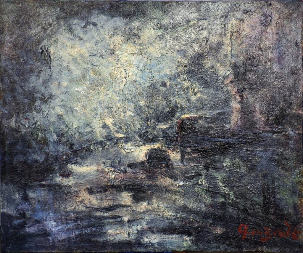 The spontaneous character of the emotions is replaced by the almost sentimental, symbolic allusions to the landscapes of gardens and architectural grounds. The Midnight Lotus (oil on canvas 50X60 cm, 2020)